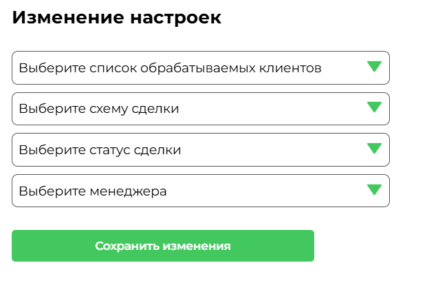 4. Кто должен быть менеджером по сделке (по-умолчанию будет назначаться ответственный по клиенту). Обратите внимание на то, что если ответственный по клиенту по политике прав в схеме не может быть менеджером, то сделка создана не будет.